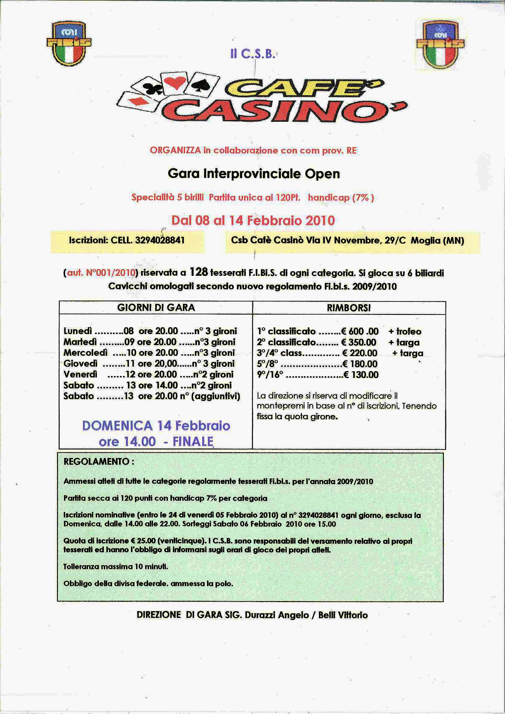 CAFE’ CASINO organizza in collaborazione con la provincia REGGIO EMILIA Gara Interprovinciale Open Specialità 5 birilli.