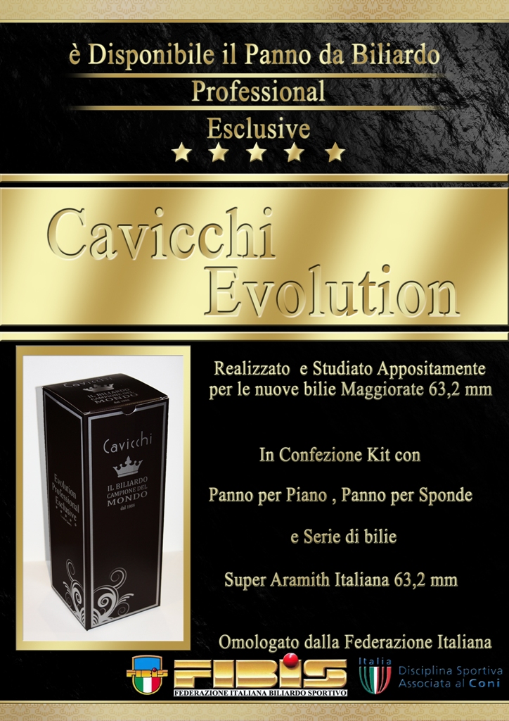 E’ DISPONIBILE IL PANNO DA BILIARDO PROFESSIONAL ESCLUSIVE ”CAVICCHI EVOLUTION”