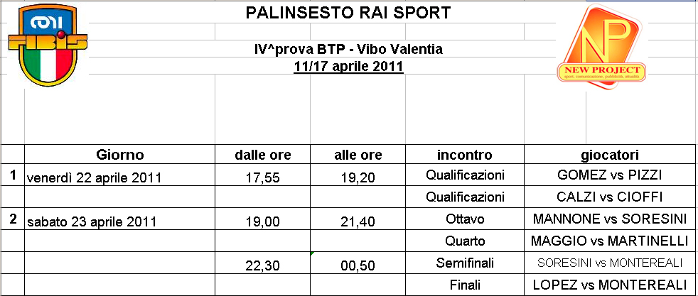 Palinsesto RAI SPORT BTP Vibo Valentia