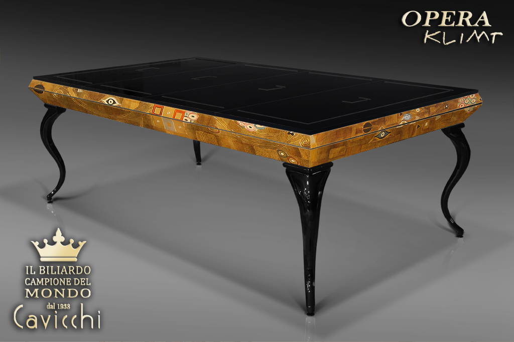 Questo biliardo Rappresenta la Fusione del Design Innovativo CAVICCHI e la tecnica unica dell’artista KLIMT.
