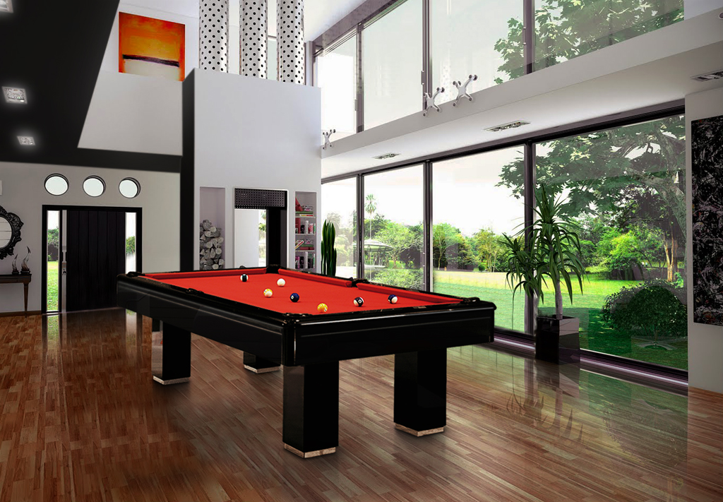 Biliardo Pool CAVICCHI DIAMOND Laccato Nero, Panno Tonalità Rosso Ferrari D’occasione ,