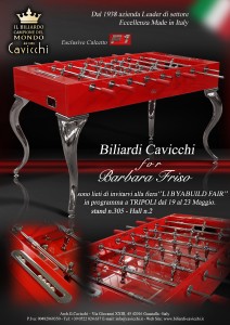 biliardi CAVICCHI vi invita alla fiera ” LIBYA BUILD FAIR ” in programma a TRIPOLI dal 19 al 23 Maggio