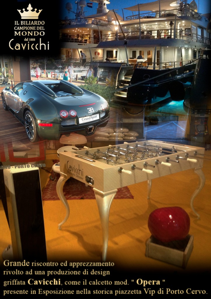 Grande risconto ed apprezzamento rivolto ad una produzione di design griffata Cavicchi, come il calcetto mod. ” Opera ” presente in Esposizione nella storica piazzetta Vip di Porto Cervo.