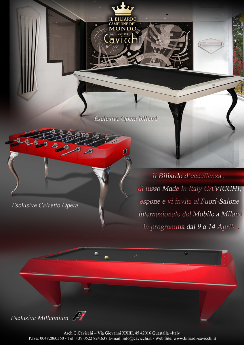 l’eccellenza del Made in Italy, biliardi CAVICCHI vi invita al Fuorisalone internazionale del design di lusso in programma a MILANO dal 9 al 14 Aprile