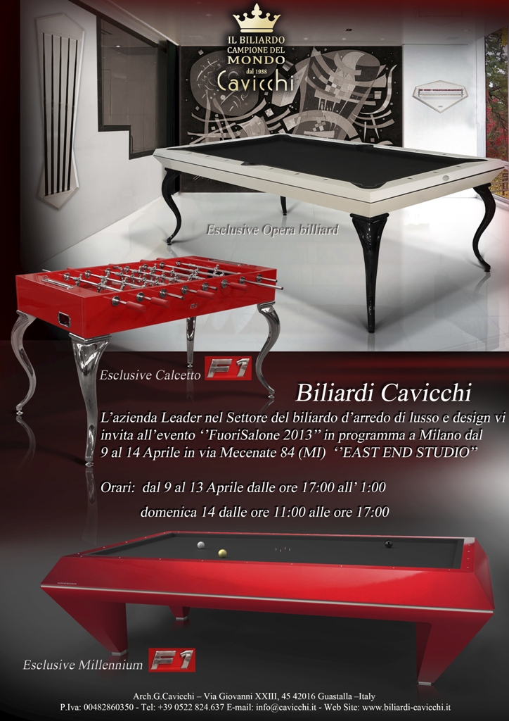 biliardi CAVICCHI vi invita al FUORISALONE 2013 in Programma A Milano