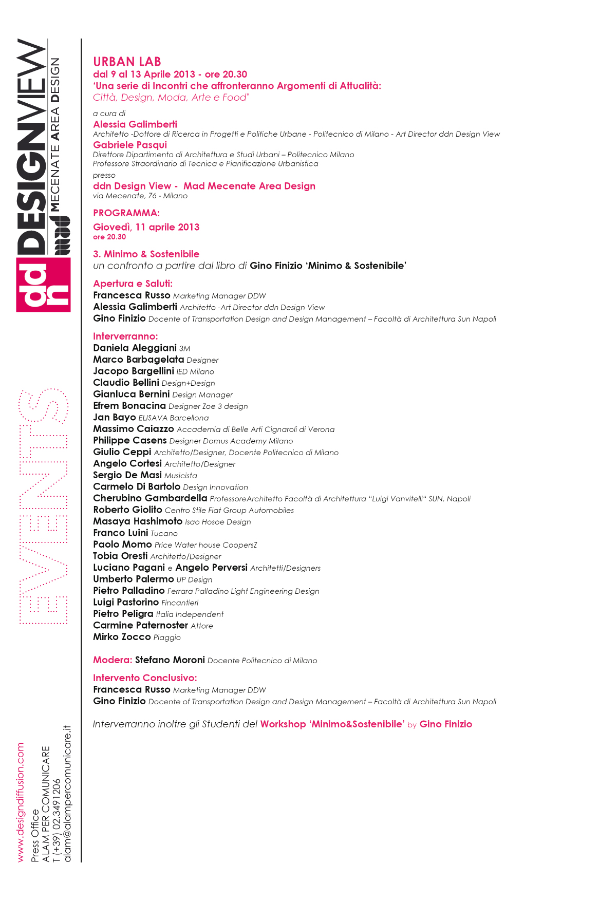 Percorsi per VIP ‘Very Important Pedestrian’ attraverso un Tour nel Design, dal quale si evince il concetto di area ambientale, un’area priva di traffico all’interno della quale l’obiettivo prioritario è il raggiungimento di una qualità ambientale soddisfacente.