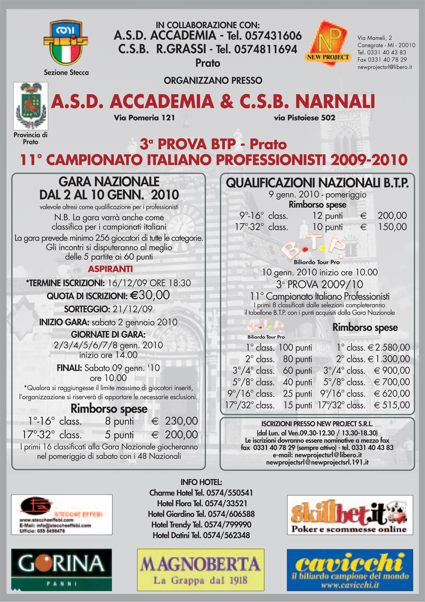 3a PROVA BTP – PRATO – con biliardi EVOLUTION