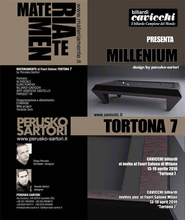 In collaborazione con lo studio di Progettazione e Design PERUSKO-SARTORI nell’ambito di ricerca denominato “MATERIAMENTE“, è stato concepito il nuovo biliardo MILLENIUM.