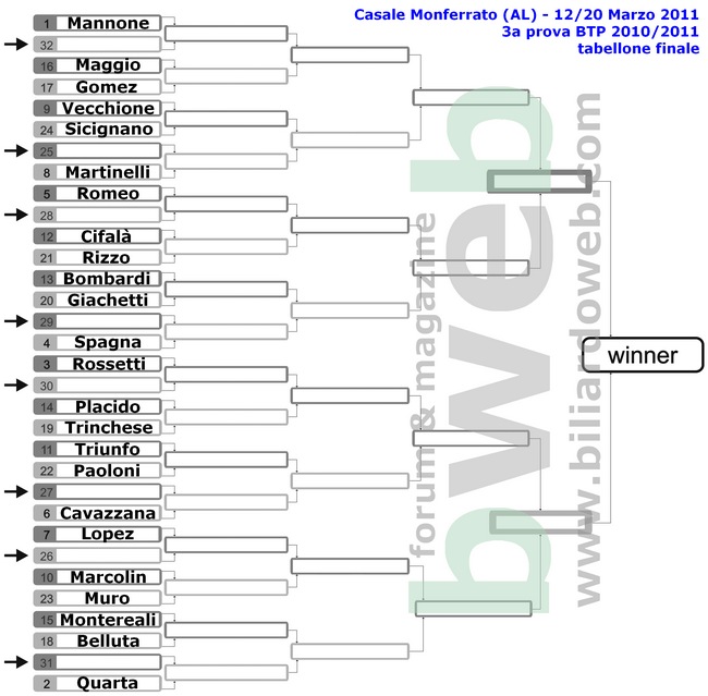 -3) Venerdì 15 Gennaio ore 23.45 semifinale tra Martinelli D. e Marcolin P. , ed a seguire la finalissima tra Lopez D. e Marcolin P.