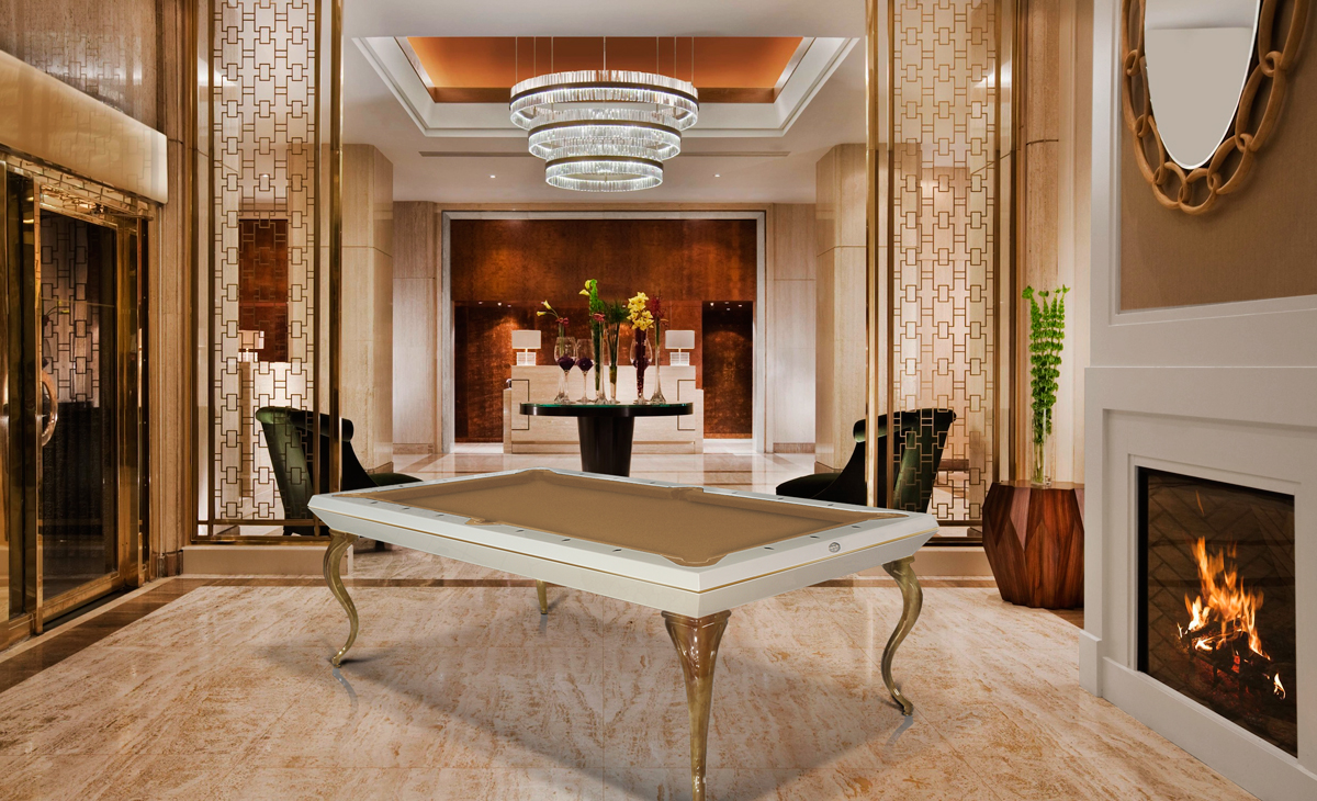 il biliardo OPERA MILLIONAIRE , versione personalizzata su richiesta di un cliente russo, dell’esclusivo OPERA BILLIARD è caratterizzato dalla sapiente applicazione del foglia oro che ne riveste interamente le basi , by CAVICCHI DESIGN .