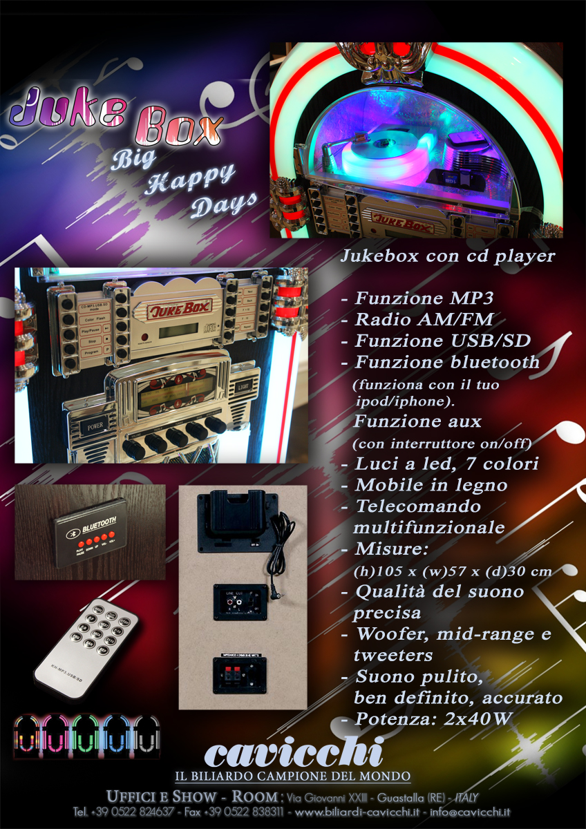 Rivisitazione in chiave moderna del mitico ‘Juke-Box made in USA’ anni ’70-’80.