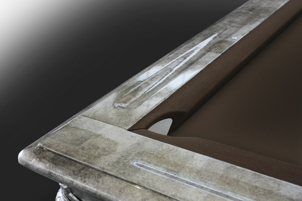 L’ Opera Billiard nella speciale laccatura bianco perlato , un vero e proprio gioiello di design curato in ogni dettaglio ,disponibile coperchio per la trasformazione a tavolo in quattro sezioni , buche rivestite in pellame di rettile , con cuciture eseguite tutte a mano .