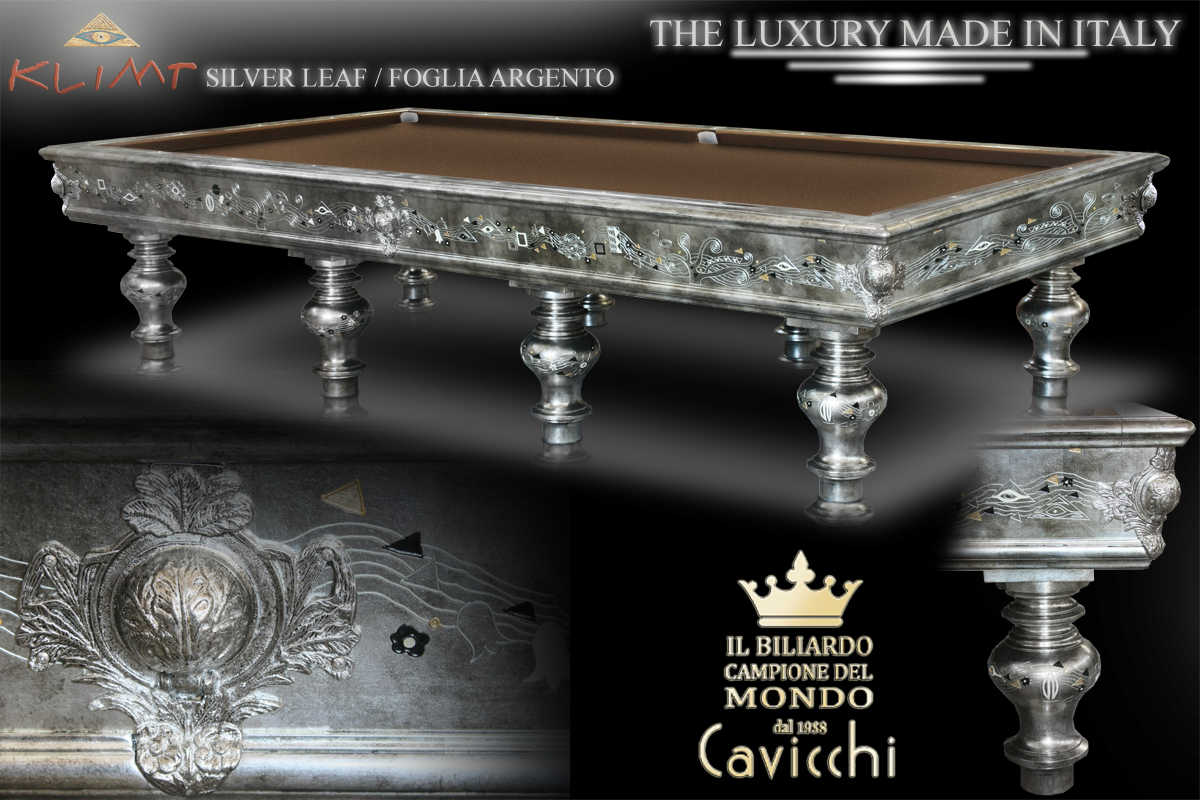 biliardi CAVICCHI : KLIMT Foglia Argento nella Speciale Versione Piramide Russa 8 basi , L’eccellenza del biliardo MADE IN ITALY
