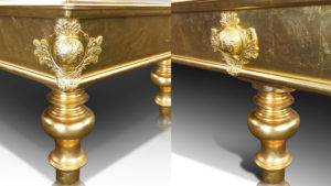 Questo capolavoro associato di tecnica ed arte, guidato con maestria dalla biliardi Cavicchi è la massima espressione riservata allo stile storico, impreziosito dall’unico rivestimento in Vera foglia oro.
