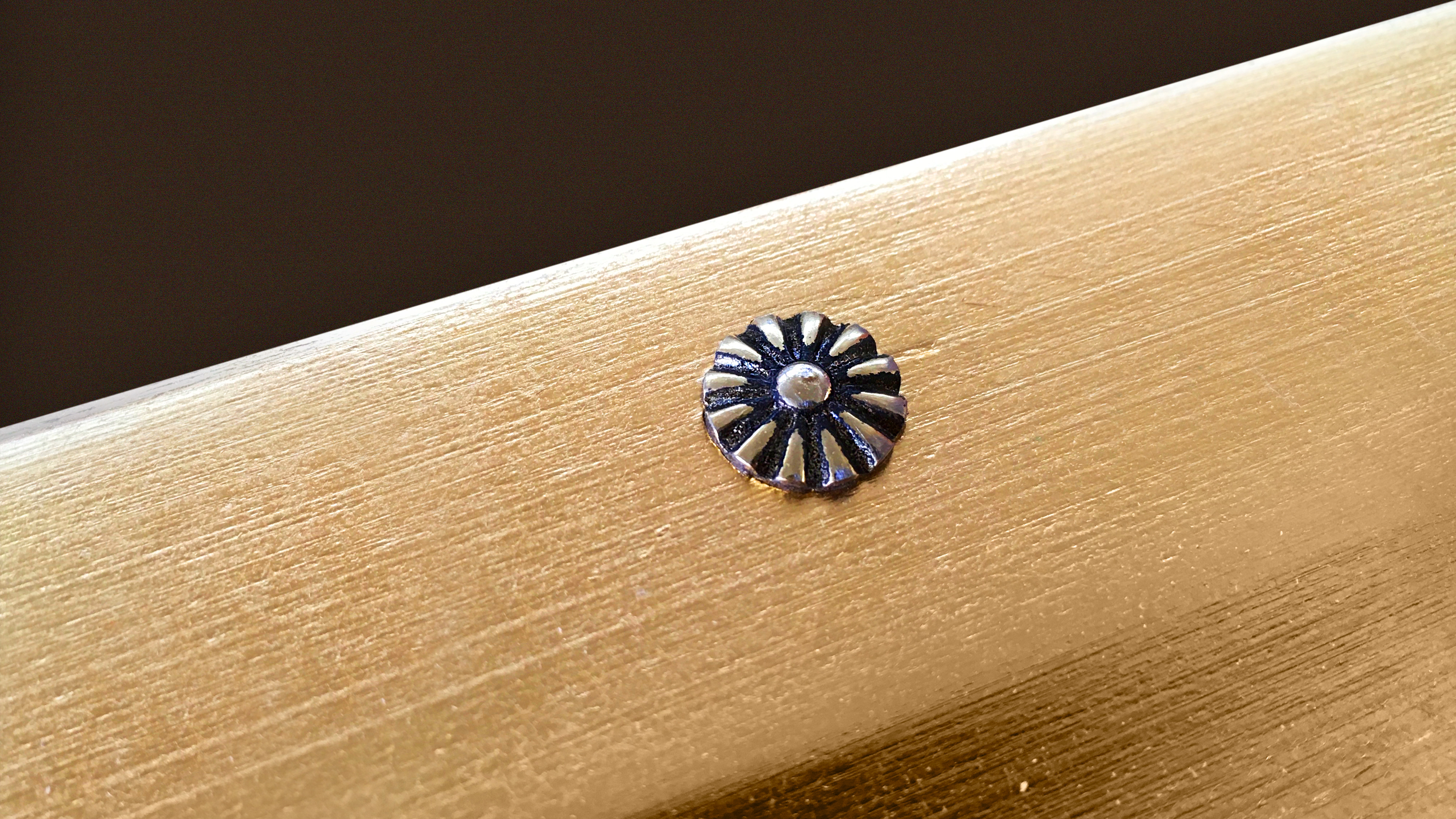 Questa carambola è anche provvista di finiture in oro che ne dividono l’elegante laccatura perlata .